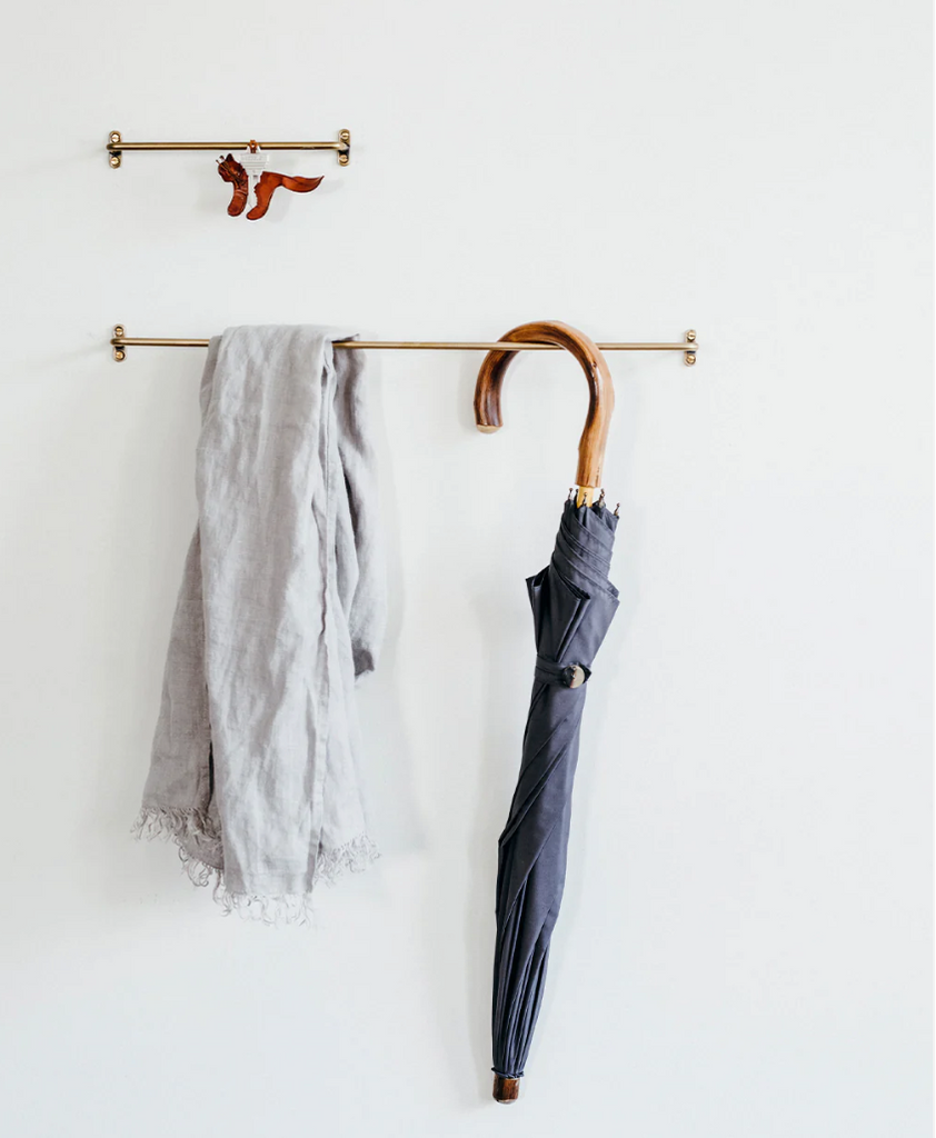 note: When installed properly, the L size holds 3 kg. When installing into sheetrock, we recommend using drywall anchors. When installing into hard woods, pre-drill pilot holes for the brass screws and use a drill-driver that will allow you to limit the torque applied to the screw. Wipe up any water spots on your brass immediately to prevent hard water deposits. Rinse the brass with clear water and dry it with a soft cloth. Buff with a microfibre towel to restore the shine and a polished look.