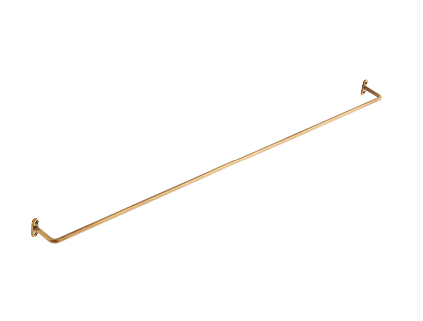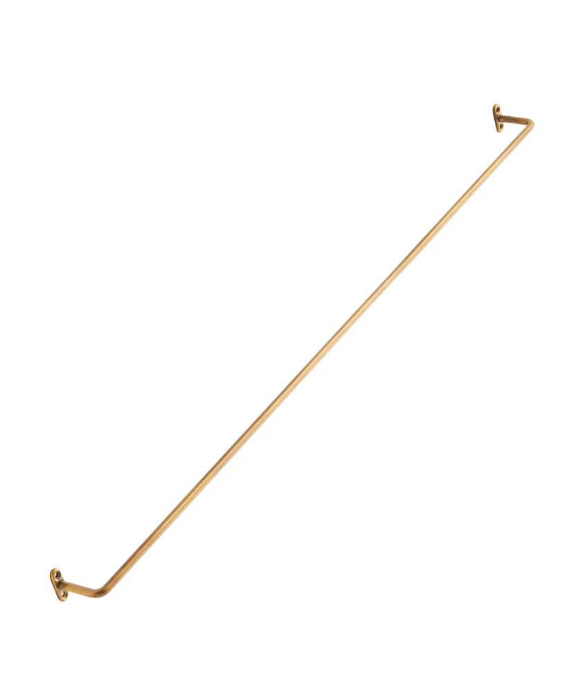 Simple, hand-made towel bars in warm, antiqued brass. Irregularities in finish will occur. Useful in the kitchen, bathroom, or display. Each bar includes four matching screws, but it's important to know what material you are working with prior to installation. Ask your contractor or friendly hardware store associate if you are unsure as you may need different screws.